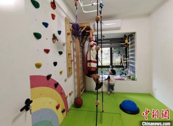 4月1日,廣西南寧,沙部·魯比在家中打造微型“運(yùn)動(dòng)場(chǎng)”。當(dāng)天,在桂臺(tái)灣教師沙部·魯比喬遷新居,實(shí)現(xiàn)跨越海峽的“安居夢(mèng)”。 中新社記者 張廣權(quán) 攝