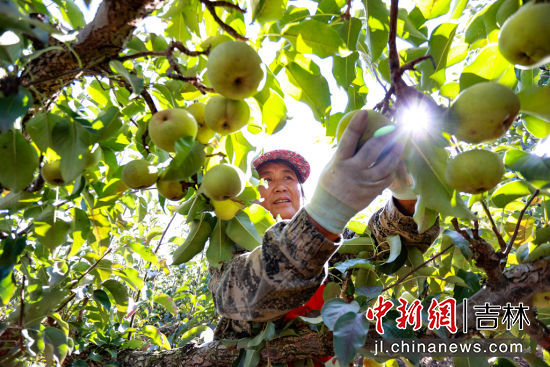 9月27日,記者在位于延吉市朝陽川鎮(zhèn)德新村的延邊七寶果業(yè)有限公司蘋果梨果園看到,棵棵果樹上結(jié)滿了大個的蘋果梨,掛在枝頭隨風(fēng)擺動,看起來喜人極了。