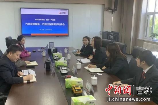 中新網(wǎng)吉林新聞5月18日電 (譚偉旗 張楠鈺)為持續(xù)優(yōu)化法治化營商環(huán)境,不斷延伸司法的社會功能,助力轄區(qū)企業(yè)高質量健康發(fā)展,近日,長春汽車經(jīng)濟技術開發(fā)區(qū)人民法院審判委員會專職委員張多嬌帶領立案庭法官干警到企業(yè)開展司法保障需求調研對接。