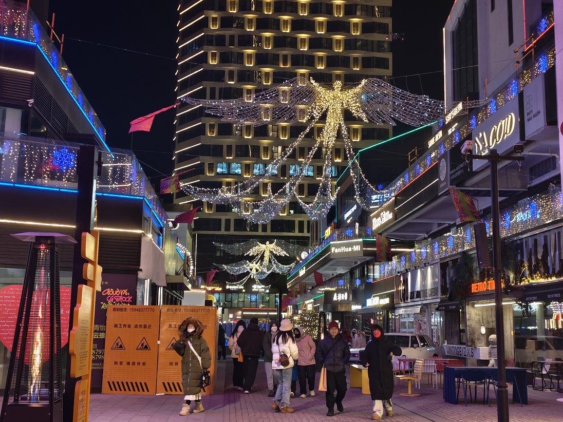 活動(dòng)當(dāng)晚,阿卡貝拉樂團(tuán)的動(dòng)人歌聲為亮燈儀式拉開序幕。80萬顆LED燈珠組成的8米高流光燈帶同步點(diǎn)亮,與13米高的巨型云杉童話樹交相輝映,搭配光影瀑布、歐洲網(wǎng)紅天使燈陣、光影堤岸等多組藝術(shù)裝置,將青怡坊云瑯打造成流光溢彩的“童話秘境”。游客穿梭其中,步步皆景、處處可打卡,沉浸式感受“現(xiàn)實(shí)版童話世界”的獨(dú)特魅力。
