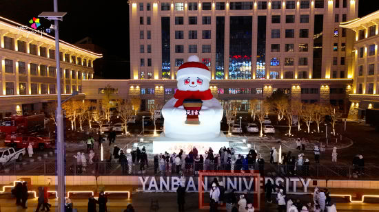 延邊大學(xué)正門西側(cè)則成為網(wǎng)紅打卡新地標(biāo)。12月31日17:18,超12米高的網(wǎng)紅大雪人正式亮相,雪人手持印有“延吉”字樣的咖啡杯,搭配紅帽紅圍巾的喜慶裝扮,成為城市跨年的標(biāo)志性景觀,也讓“延吉”城市標(biāo)識(shí)通過(guò)視覺(jué)符號(hào)深入人心。