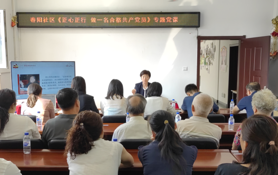 近日,長(zhǎng)春市綠園區(qū)委常委、統(tǒng)戰(zhàn)部部長(zhǎng)譚丹到鐵西街道春陽(yáng)社區(qū)以《正心正行,做一名合格共產(chǎn)黨員》為題講專(zhuān)題黨課。