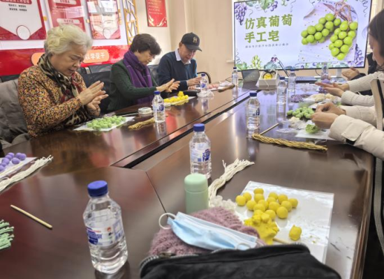 活動(dòng)現(xiàn)場,支行工作人員提前布置好活動(dòng)場地,準(zhǔn)備制作葡萄手工皂所需的全部材料與工具。專業(yè)手工老師現(xiàn)場指導(dǎo)客戶復(fù)刻網(wǎng)紅同款葡萄手工皂,從材料配比、模具塑形到成品脫模,每一個(gè)步驟都細(xì)致講解、耐心示范?蛻魝儫崆楦邼q,紛紛動(dòng)手嘗試,在手工制作過程中體驗(yàn)創(chuàng)作的樂趣,打造專屬于自己的“治愈時(shí)光”。