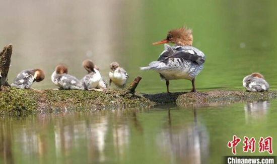 在吉林園池濕地國家級自然保護區(qū)頭道白河支流,工作人員監(jiān)測到40多只中華秋沙鴨,4個天然巢、14個仿生巢都有中華秋沙鴨入住。該保護區(qū)管理局資源科科長韓銘介紹,已有5個巢成功完成孵化,新跳巢雛鳥數量有51只,其他巢的中華秋沙鴨也在孵化中。