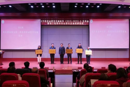 校長潘福林為各基地單位代表授予授牌。此次新增授牌基地涵蓋“紅色勞動傳承、鄉(xiāng)村振興實踐、智能勞動體驗、志愿服務(wù)實踐、非遺文化傳承”五個類別,將進一步拓寬勞動教育實踐邊界,為學(xué)生提供“在田間地頭學(xué)勞動、在工廠車間悟技能、在紅色沃土鑄信念”的多元化場景。
