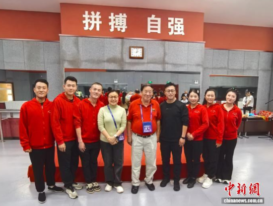 9月22日,吉林四平,戴锜(居中)在梨樹縣了解二人轉(zhuǎn)文化,與演員合照。 張至弘 攝