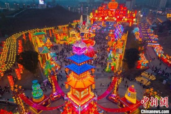 中新社四川自貢2月5日電 題:“南國(guó)燈城”元宵夜 彩燈萬盞慰相思