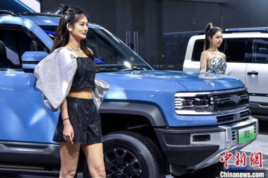 9月13日,海南海口,車模助陣海南金秋車展。當(dāng)日,因超強(qiáng)臺(tái)風(fēng)“摩羯”而兩度延期的2024海南金秋車展暨智能網(wǎng)聯(lián)新能源車展在?谂e行。作為臺(tái)風(fēng)災(zāi)后海南的首場(chǎng)車展,本次展出面積達(dá)5萬(wàn)平方米,共有近百個(gè)汽車品牌參展,其中新能源車型占比70%。中新社記者 駱云飛 攝