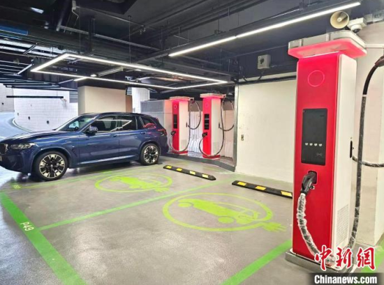 圖為華為在香港將軍澳藍塘匯商場停車場內設置的充電站!∠愀廴A為國際有限公司供圖