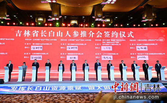 推介會(huì)上,與會(huì)人員共同觀看了長白山人參專題宣傳片。通化市委書記孫簡,白山市委書記、長白山保護(hù)開發(fā)區(qū)黨工委書記謝忠?guī)r,延邊州委副書記馮濤,分別推介人參產(chǎn)業(yè)發(fā)展情況;中國民族貿(mào)易促進(jìn)會(huì)以及吉林華瑞參業(yè)有限公司等企業(yè)代表分別發(fā)言;進(jìn)行了項(xiàng)目集中簽約。