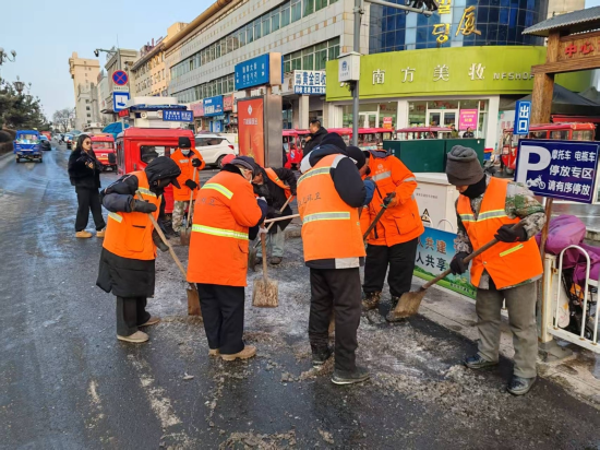 同時(shí)走訪沿街商戶、商場(chǎng),督促相關(guān)負(fù)責(zé)人及時(shí)清除背光區(qū)冰面,清理時(shí)根據(jù)實(shí)際情況采用人工清理和撒布融雪劑相結(jié)合的方式,確保道路整潔安全。本次行動(dòng),城管執(zhí)法局出動(dòng)執(zhí)法人員及環(huán)衛(wèi)人員共計(jì)200余人,廣泛動(dòng)員臨街商戶、相關(guān)單位積極配合,投入到除冰工作中來(lái)。