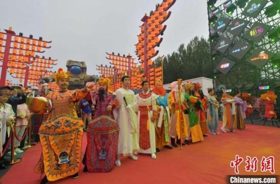 當(dāng)晚,長春電影嘉年華結(jié)合影視元素,打造了30組傳統(tǒng)神話中的人物 IP進行沉浸式表演和巡游。同時,以凈月蟠桃盛宴為主題的活動也同步上演。