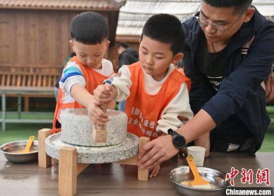 近來,鄉(xiāng)村農事研學活動在長春頗受歡迎。4月27日,在長春市陳家店村,萌娃們紛紛化身“小農人”,通過磨豆?jié){、采摘水果、參觀勞作工具等活動體驗農事樂趣,親近自然。