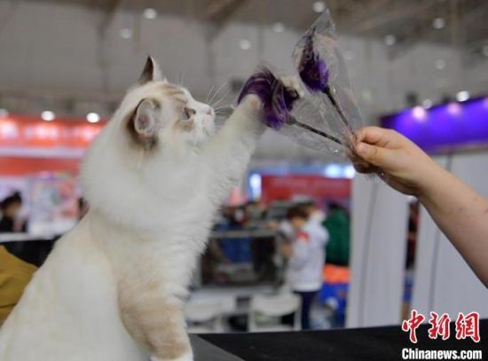 市民在和“喵星人”互動。市民在和“喵星人”互動。寵物展上的貓咪十分可愛。 市民在和“喵星人”互動!市民在和“喵星人”互動!