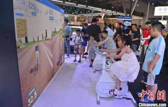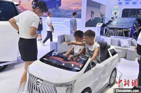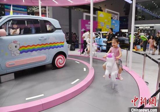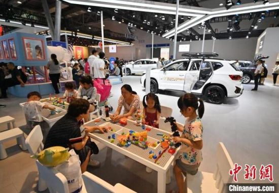 7月13日,在第21屆長春國際汽車博覽會上,小朋友在淘氣堡玩耍。本屆長春汽博會有全球124個品牌的展車亮相,現(xiàn)場設置了許多游戲體驗項目,吸引小朋友們參與。 (中新社記者 張瑤/攝)