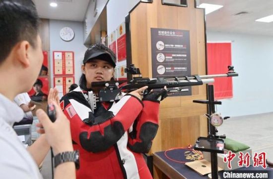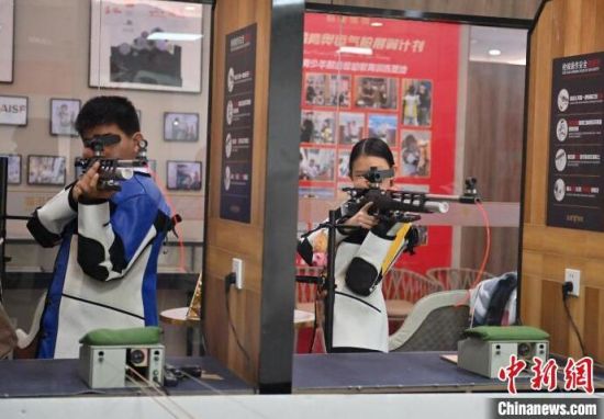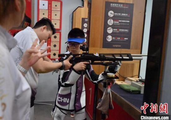 7月19日,在吉林省長春市一家氣槍訓練基地,學生們在進行據槍訓練。正值暑期,該氣槍訓練基地吸引不少青少年體驗射擊運動。(中新社記者 張瑤/攝)