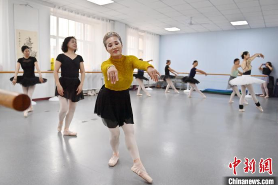 11月21日,在位于吉林長(zhǎng)春的吉林省社區(qū)老年大學(xué),老年人在學(xué)習(xí)芭蕾舞。這些老年人年齡最大的已有70歲,她們每周聚在一起挑戰(zhàn)“足尖上的藝術(shù)”,演繹不老芳華。中新社記者 張瑤 攝