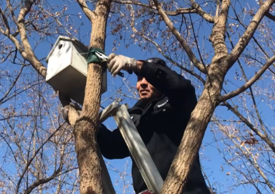 長(zhǎng)春一公園連續(xù)多年設(shè)人工鳥(niǎo)巢助鳥(niǎo)類越冬