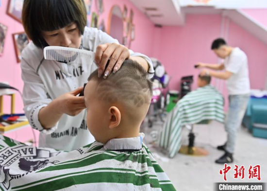 3月1日,農(nóng)歷二月初二,在吉林長春一家兒童理發(fā)店,家長紛紛帶著孩子來“剃龍頭”,理發(fā)店還為孩子們?cè)O(shè)計(jì)了各種有趣的發(fā)型。中新社記者 張瑤 攝