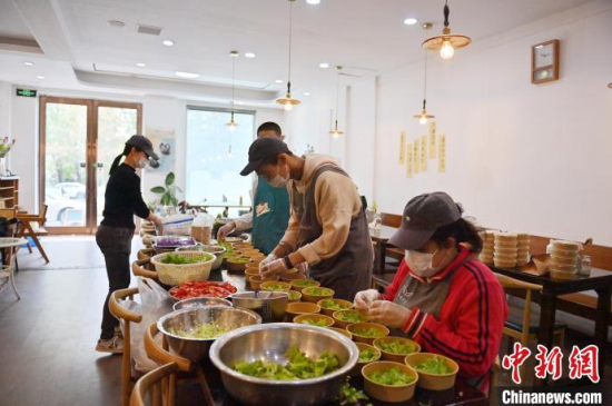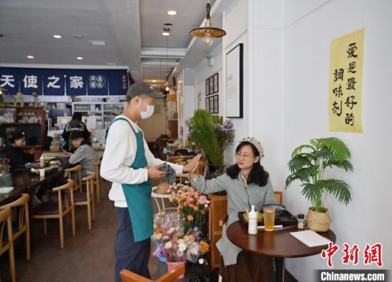 5月8日,吉林長(zhǎng)春,“天使之家”餐飲店的店員在收拾餐桌。這里的部分工作人員是孤獨(dú)癥患者,這家店旨在助力青年孤獨(dú)癥群體就業(yè),融入社會(huì)。他們通過(guò)訓(xùn)練,已經(jīng)可以完成切菜、備餐、收拾店內(nèi)衛(wèi)生、撤餐等工作。中新社記者 張瑤 攝