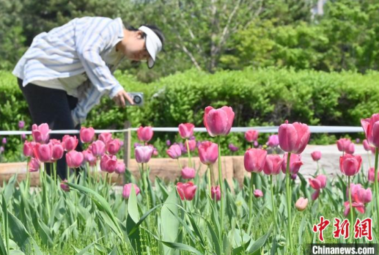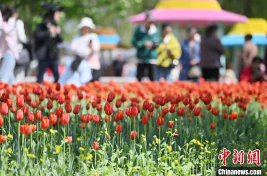 5月15日,在長(zhǎng)春市長(zhǎng)春公園內(nèi),近十萬(wàn)株郁金香競(jìng)相綻放,吸引了眾多游客前來觀賞。當(dāng)天,“幸福匯·郁見美好”長(zhǎng)春公園郁金香主題觀賞季系列活動(dòng)正式啟幕,游客在賞花觀景中享受夏日清涼。中新社記者 張瑤 攝