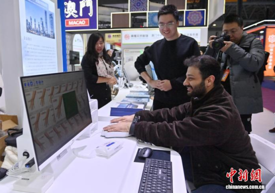 12月7日,吉林長春,參觀者體驗中醫(yī)健康評估系統(tǒng)。當日,2025長春國際醫(yī)藥健康產(chǎn)業(yè)博覽會開幕,AI智能中醫(yī)藥診療系統(tǒng)、中醫(yī)經(jīng)絡(luò)檢測儀、爬樓機器人等前沿診療與智慧生活設(shè)備,吸引了大批觀眾互動參與,感受科技賦能下傳統(tǒng)醫(yī)學(xué)與現(xiàn)代健康管理的創(chuàng)新融合。 中新社記者 張瑤 攝