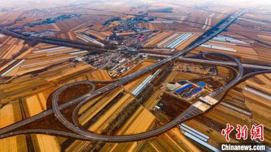 鳥瞰長春都市圈環(huán)線高速公路東環(huán)二期項(xiàng)目。(資料圖) 吉林省交通運(yùn)輸廳供圖