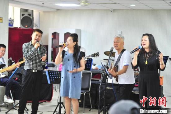 吉林長(zhǎng)春的一支老年樂隊(duì)在練習(xí)歌曲。(資料圖)