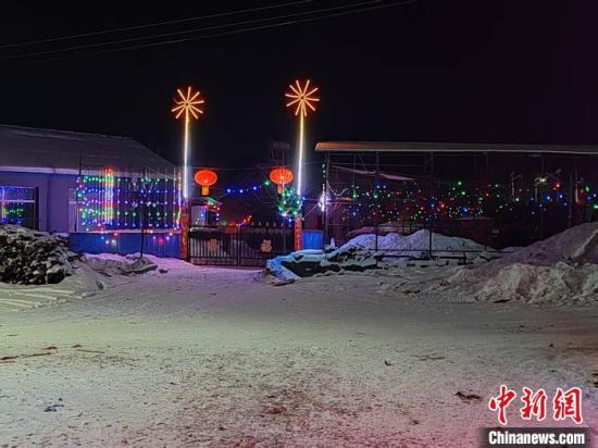 為慶祝春節(jié),大河森村玉米種植大戶們給庭院做起亮化工程!∏男 攝