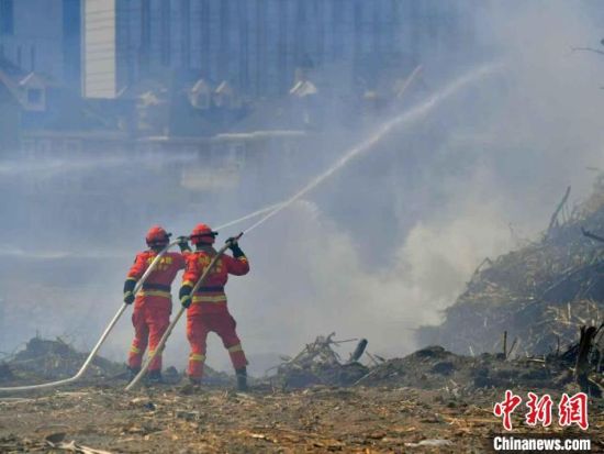 吉林長春,消防救援人員正在進行滅火演練。劉棟 攝